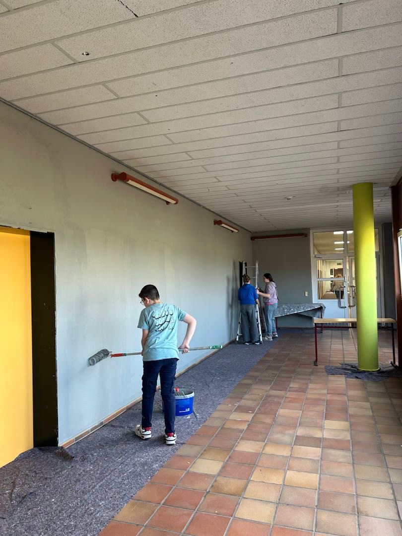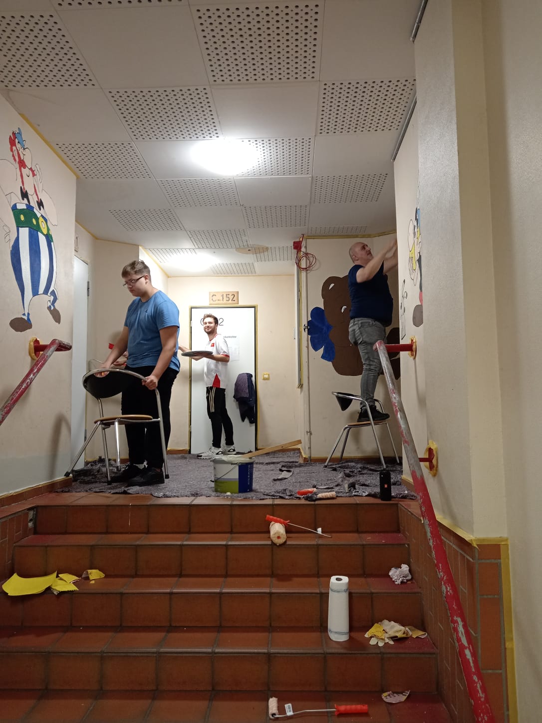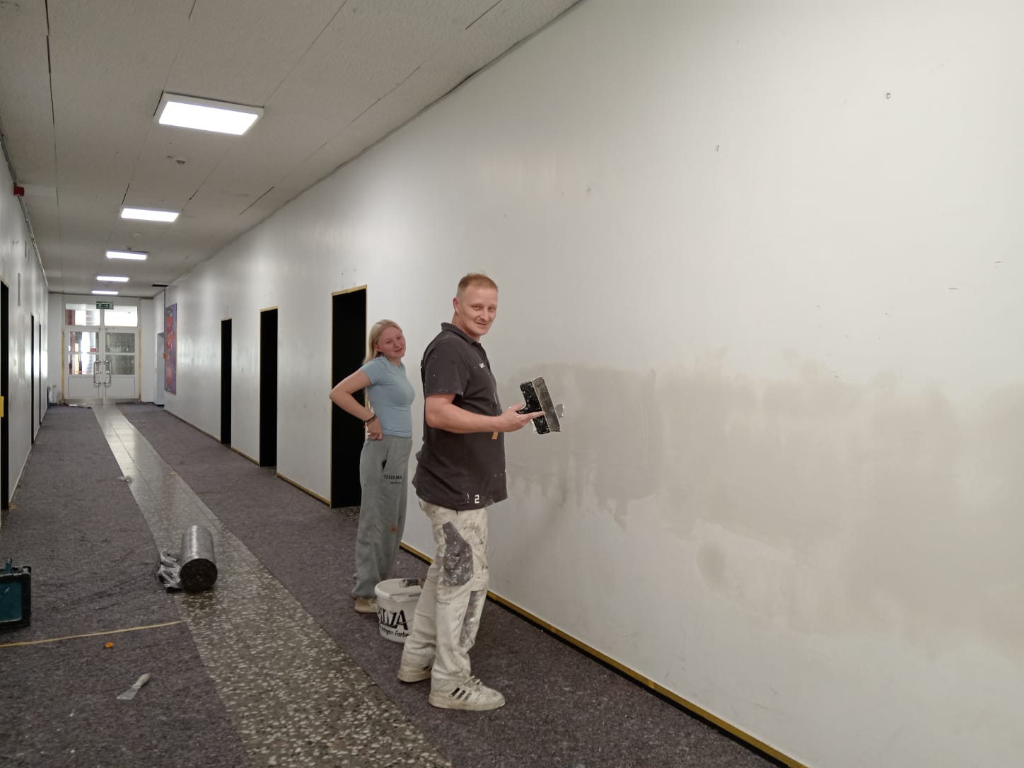 Mit enormem Einsatz wurden an zwei Tagen zahlreiche Flure gestrichen, gespachtelt, geschmirgelt und gereinigt: